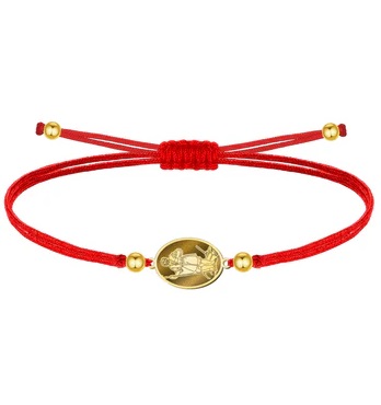 Pulsera poliéster encerado rojo, San Isidro Labrador, Acero Dorado