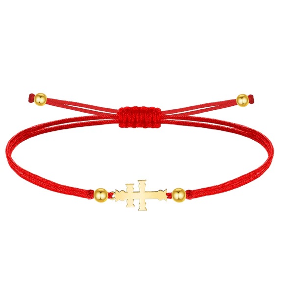 Pulsera poliéster nylon rojo y Cruz Caravaca, Acero Dorado