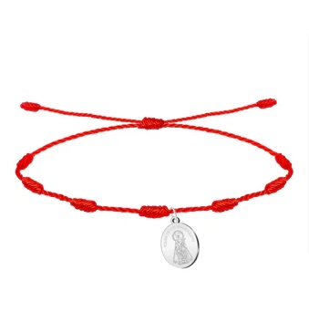 Pulsera 7 nudos roja, con Virgen de los desamparados, Acero Plateado