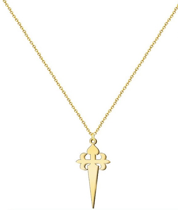 Colgante con cadena Cruz de Santiago, Acero Dorado