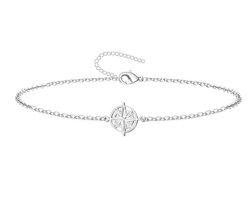 Pulsera con cadena Rosa de los Vientos, Acero Plateado