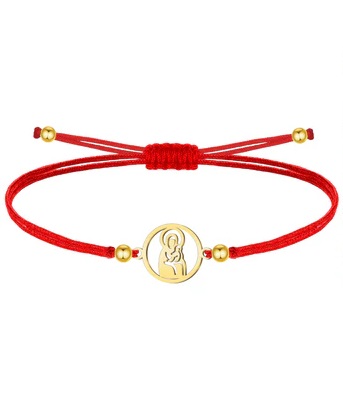 Pulsera poliéster encerado rojo y Virgen de la Valvanera, Acero Dorado