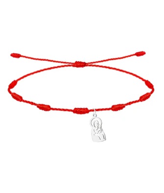 Pulsera 7 nudos Roja con la Virgen de la Valvanera, Acero Plateado