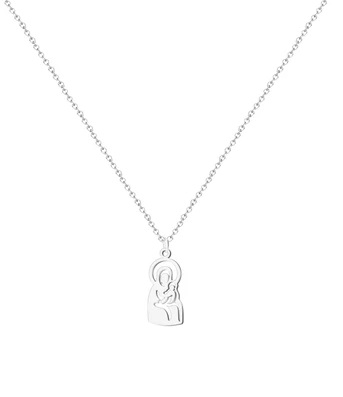 Collar con cadena y la Virgen de la Valvanera, Acero Plateado