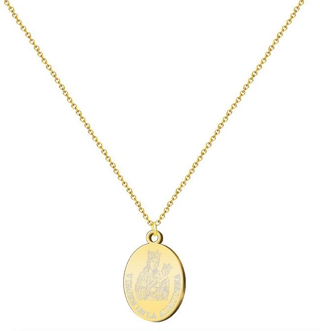 Colgante y cadena Virgen de la Almudena, Acero Dorado