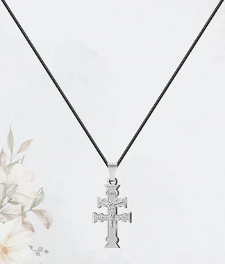 Colgante Cruz de Caravaca con Cristo y collar de poliéster negro, Acero Plateado