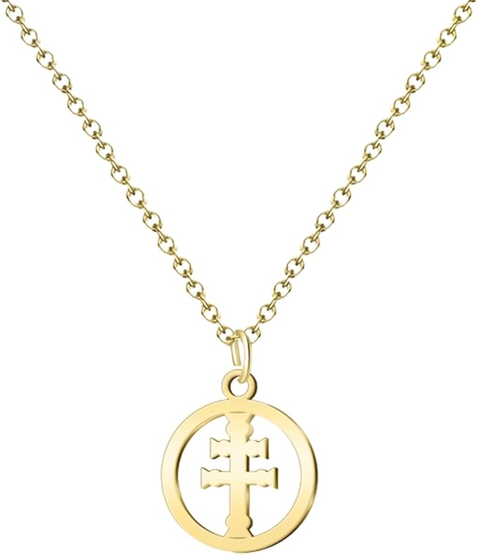 Colgante con cadena y Cruz de Caravaca, Acero Dorado