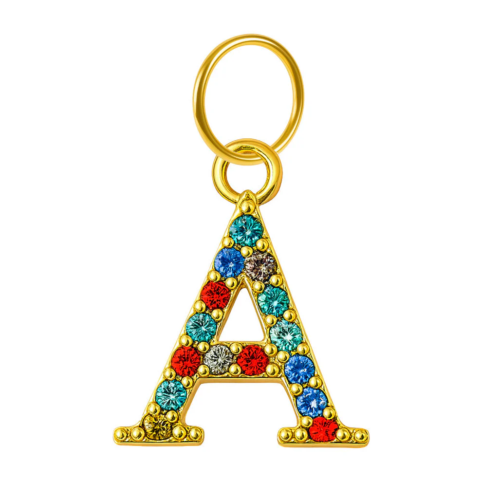 Colgante Elige Letra de Acero Dorado con circonitas de colores y anilla
