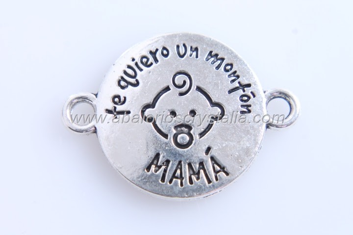 5 CONECTORES te quiero un montón MAMÁ PLATA ANTIGUA 31x22mm